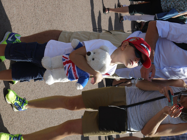 街頭好好拍:來看交接的小孩抱著倫敦熊來觀看呢